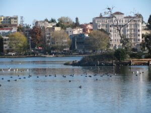 golden gate bird alliance Birds and island viewed from path near the Rotary Nature Center. Note the cormorant nest in the tree on the island. /